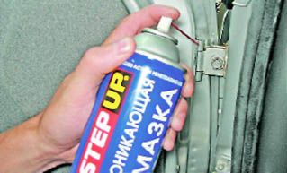 3. Наносим пластичную смазку на рабочую поверхность ограничителей дверей...