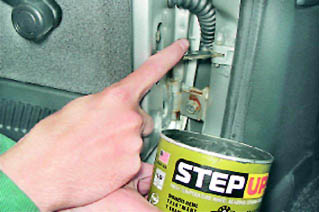 Техническое обслуживание кузоваСмазку петель и ограничителей дверей, очистку дренажных отверстий следует выполнять при каждом периодическом техническом обслуживании (каждые 15 000 км пробега). Замочные скважины дверей необходимо смазывать 2-3 раза в год. Для выполнения работы потребуется отрезок проволоки диаметром 1-1,5 мм (или большая канцелярская скрепка). Очистку дренажных отверстий в порогах удобнее выполнять на смотровой яме или эстакаде. Последовательность выполнения 1. Подготавливаем автомобиль к выполнению работы (см. 5, п. 1 и 2). 2. Открыв дверь, впрыскиваем проникающую смазку в шарниры петель. Аналогично смазываем петли других дверей автомобиля...