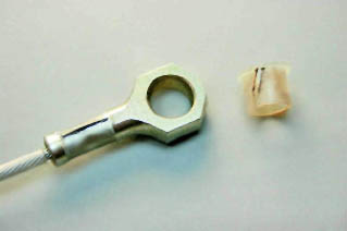 Предупреждение! В отверстии наконечника троса установлена полиэтиленовая втулка, не потеряйте ее.