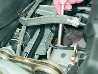 3. Слегка покачивая двигатель, вынимаем болт.