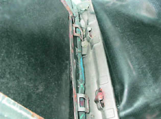 8. Приподняв секцию спинки вверх, выводим ее петли из зацепления с крючками пола...