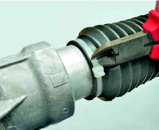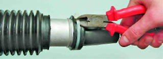 5. Бокорезами перекусываем два пластмассовых хомута крепления защитного чехла.