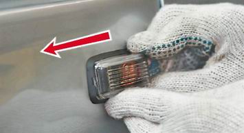 2. Сдвигаем боковой указатель поворота вперед вместе с уплотнительной прокладкой.