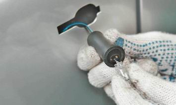 4. Извлекаем патрон лампы вместе с резиновым защитным чехлом из корпуса указателя.