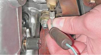 1. Снимаем с датчика защитный чехол и отсоединяем наконечник провода от вывода датчика.