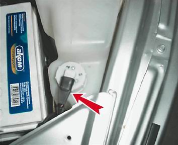 3. Отворачиваем крышку бачка омывателя ветрового стекла. Извлекаем датчик из бачка. Неисправный датчик заменяем в сборе.