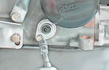 3. Торцовой головкой отворачиваем болт крепления датчика.