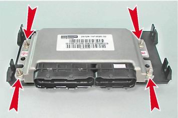 6. Торцовым ключом на 10 мм отворачиваем четыре болта крепления ЭБУ к кронштейну.