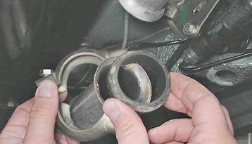 3. Снимаем хомут и извлекаем уплотнительное кольцо.