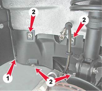 4. Выводим щиток из зацепления с подкрылком переднего крыла и снимаем щиток.