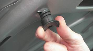4. Большой шлицевой отверткой отжимаем петлю от капота и выводим шпильки из отверстий петли. 5. Снимаем капот с автомобиля. Установка Устанавливаем капот в обратной последовательности. При установке капота совмещаем положение шайб гаек крепления с метками на петлях. При установке нового капота необходимо отрегулировать его положение на автомобиле. Регулировка Овальные отверстия в петлях капота позволяют изменять положение капота в продольном направлении. 1. Слегка ослабляем затяжку гаек крепления капота (так, чтобы капот можно было смещать с небольшим усилием). 2. Прикрыв капот, регулируем его положение по зазорам. Зазоры между передними дверями и капотом должны быть одинаковыми и равными зазору между передними крыльями и передними дверями. 3. Приоткрыв капот, сильнее заворачиваем гайки его крепления. 4. Убедившись, что капот не сместился, окончательно затягиваем гайки. При необходимости регулировку повторяем. 5. Завернув резиновые упоры на место, регулируем положение капота по высоте.