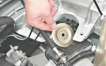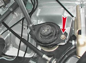 5. Торцовым ключом на 13 мм отворачиваем два болта крепления подушки опоры к кронштейну кузова.