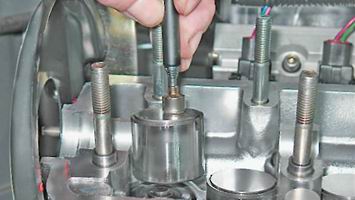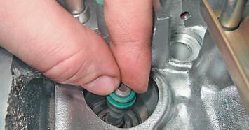 Маслосъемные колпачки двигателей 2111 и 21114 (8v) - заменаДля выполнения работы потребуются: - оловянный пруток; - магнит; - рассухариватель; - пинцет; - съемник маслосъемных колпачков; - оправка для запрессовки колпачков. Снятие 1. Снимаем распределительный вал (см. "Распределительный вал двигателей 2111 и 21114 (8V) - снятие и установка"). 2. Магнитом вынимаем из посадочных мест в головке блока цилиндров толкатели с регулировочными шайбами.