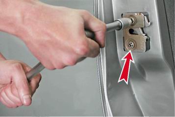 Совет. Ключ можно изготовить из крестовой отвертки (размер № 3). Для этого надо надеть на лезвие отвертки гайку под ключ на 17 мм и приварить гайку электросваркой в середине лезвия Снятие 1. Подготавливаем автомобиль к выполнению работы (см. "Подготовка автомобиля к техническому обслуживанию и ремонту"). 2. Воротком со съемным крестовым наконечником ослабляем затяжку двух винтов замка.