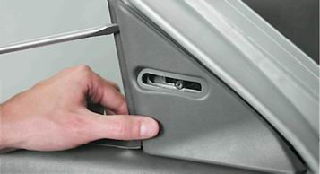 2. Тонкой шлицевой отверткой извлекаем из рукоятки управления зеркалом заглушку.