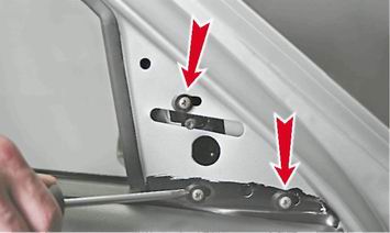 6. Придерживая зеркало снаружи, крестовой отверткой отворачиваем три винта крепления зеркала.