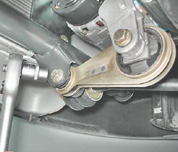 3. Ключом на 15 мм отворачиваем болт крепления штанги к поперечине.