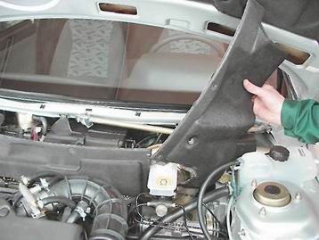 3. Извлекаем и снимаем левую часть обивки моторного отсека.