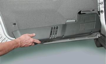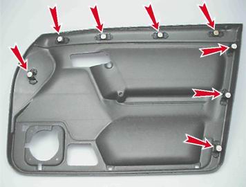 Установка Устанавливаем обивку двери в обратной последовательности. Перед установкой обивки проверяем держатели крепления - деформированные или поврежденные держатели заменяем.