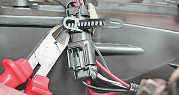 8. Отсоединяем колодку жгута проводов от дополнительного резистора отопителя.