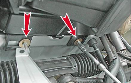 11. Торцовым ключом с глубокой головкой на 10 мм отворачиваем две гайки нижнего крепления отопителя.