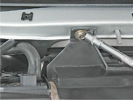 12. Торцовым ключом на 8 мм отворачиваем саморез верхнего крепления отопителя.