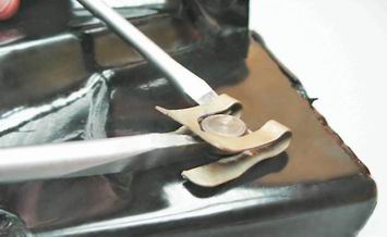 5. Шлицевой отверткой снимаем стопорную скобу оси педали тормоза.