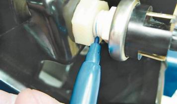2. Для сохранения прежней регулировки педали тормоза маркером помечаем положение контргайки выключателя сигналов торможения.
