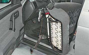 Предупреждение! При извлечении передних сидений из салона автомобиля соблюдайте осторожность: можно пораниться или поцарапать обивку салона острыми концами салазок. 9. Извлекаем сиденье через проем передней двери.