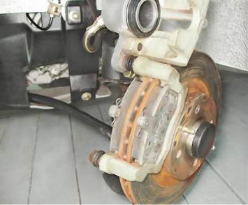 10. Снимаем тормозные колодки. 11. Небольшой металлической щеткой очищаем от грязи и ржавчины посадочные места колодок.