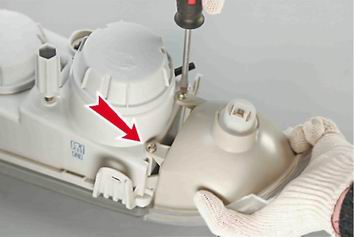 2. Шлицевой отверткой отворачиваем два винта крепления переднего указателя поворота к корпусу блок-фары.