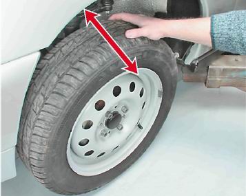 Передняя подвеска - проверка технического состоянияПроверку технического состояния передней подвески необходимо выполнять в соответствии с регламентом периодического технического обслуживания (см. "Периодическое техническое обслуживание"). Оценить техническое состояние подвески можно во время движения автомобиля. При движении на небольшой скорости по неровной дороге подвеска должна работать без стуков, скрипов и других посторонних звуков. После переезда через препятствие автомобиль не должен раскачиваться. Совет. Проверку подвески лучше совместить с проверкой состояния шин и подшипников ступиц колес (см. "Ступицы, диски и шины - проверка технического состояния"; односторонний износ протектора с наружной или внутренней стороны шины свидетельствует о нарушенной регулировке углов установки колес в передней подвеске). Для выполнения работы потребуется смотровая яма или эстакада. Последовательность выполнения 1. Подготавливаем автомобиль к выполнению работы (см. "Подготовка автомобиля к техническому обслуживанию и ремонту"). 2. Усилием рук покачиваем верхнюю часть переднего колеса автомобиля в поперечном направлении. Аналогично проверяем переднюю подвеску с другой стороны автомобиля.