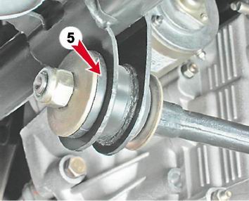 Если чувствуется люфт (даже малозаметный), то проверяем надежность крепления поворотного кулака к стойке передней подвески и состояние подшипника ступицы (см. "Ступицы, диски и шины - проверка технического состояния"). Рекомендация. Проверять работоспособность амортизаторов лучше после продолжительной поездки, пока рабочая жидкость в амортизаторах не остыла. 3. Энергично раскачиваем переднюю часть кузова автомобиля в вертикальном направлении. Если по инерции кузов продолжает совершать колебания (более двух перемещений - вверх-вниз) после того, как его перестали раскачивать, то неисправен один или оба амортизатора. Чтобы выявить неисправный амортизатор, повторяем проверку, прикладывая усилия сначала с одной стороны автомобиля, а затем с другой. Замечание. Такая проверка позволяет выявить только неисправные амортизаторы. Проверить эффективность гашения колебаний амортизаторами можно только на специальном стенде. 4. Осматриваем стойки подвески - подтекание жидкости из амортизаторов не допускается. Рекомендация. Амортизаторы следует заменять парой, даже если второй амортизатор передней подвески исправен. 5. Визуально проверяем состояние чехлов шаровых опор (4), резинометаллических шарниров рычагов и продольных растяжек (2), подушек (1) и стоек (3) стабилизатора поперечной устойчивости...