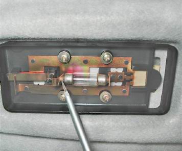 Снять плафон можно с установленной лампой, поэтому следующую операцию выполняйте при необходимости замены неисправной лампы. 3. Отверткой отжимаем пружинящий контакт и извлекаем неисправную лампу.