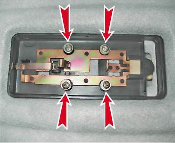 4. Крестовой отверткой отворачиваем четыре самореза крепления плафона к потолку салона.