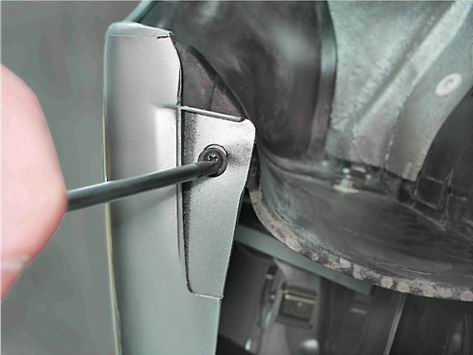 6. Крестовой отверткой отворачиваем: а) саморез нижнего соединения переднего бампера с подкрылком;