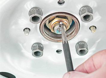 Предупреждение! Попытка отвернуть гайку оси ступицы без выпрямления ее замятого края может привести к повреждению резьбы на оси. 3. Слегка постукивая по кернеру молотком, отгибаем замятый в проточку оси ступицы край гайки.