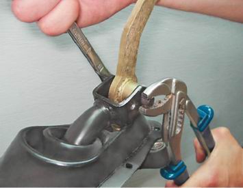 Удерживая ось плоскогубцами, отворачиваем гайку оси.