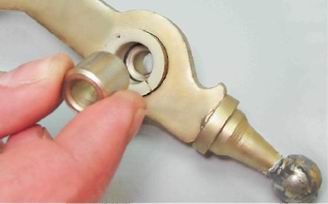 5. Вынимаем рычаг с опорой и пружину. 6. Вынимаем из рычага две дистанционные...