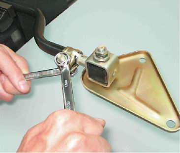 В противном случае соединить тягу с проушиной можно будет только после их установки на автомобиль (отдельно друг от друга). В этом случае они сами займут необходимое положение. 2. Двумя ключами на 13 мм отворачиваем гайку стяжного болта и разжимаем хомут.