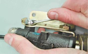 13. Ключом того же размера отворачиваем болт крепления регулировочного кронштейна.