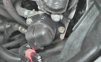Замечание. Напряжение должно быть не меньше 12 В. Если напряжение не поступает на колодку или оно меньше 12 В, значит, разряжена аккумуляторная батарея, неисправна цепь питания или неисправен ЭБУ. Предупреждение! По окончании измерения напряжения выключайте зажигание. Снятие 1. Крестовой отверткой отворачиваем два винта крепления регулятора холостого хода к корпусу дроссельной заслонки.