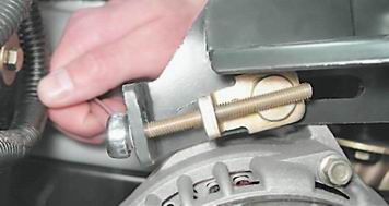 5. Вращая накидным ключом на 10 мм регулировочный болт, регулируем натяжение ремня (по часовой стрелке увеличиваем натяжение ремня, а против часовой стрелки - уменьшаем).