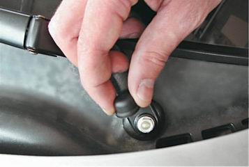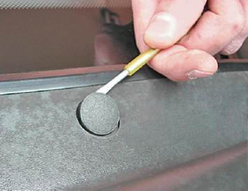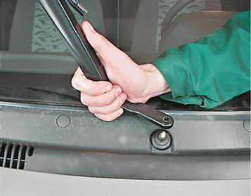 Совет. Если рычаг плотно сидит на вале, то наживляем гайку на резьбу вала и спрессовываем рычаг при помощи раздвижных пассатижей (см. "Стеклоочиститель заднего стекла - снятие и установка"). 6. Аналогично снимаем правый рычаг. 7. Тонкой шлицевой отверткой извлекаем четыре декоративные заглушки, закрывающие саморезы верхнего крепления решетки воздухопритока.