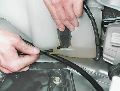 11. Отсоединяем шланг от насоса омывателя ветрового стекла.