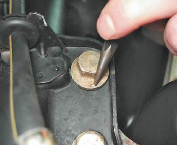 7. Снимаем с болтов шайбы (шайба верхнего болта эксцентриковая) и вынимаем болты.