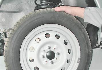 Предупреждение! Согласно "Приложению к Основным положениям по допуску транспортных средств к эксплуатации и обязанностям должностных лиц по обеспечению безопасности дорожного движения" запрещается эксплуатация легкового автомобиля: - если высота протектора шин составляет менее 1,6 мм; - с шинами, имеющими внешние повреждения (пробои, порезы, разрывы), обнажающие корд, а также расслоение каркаса, отслоение протектора и боковины; - если отсутствует болт крепления или имеются трещины диска и ободьев колес, имеются видимые нарушения формы и размеров крепежных отверстий; - если шины по размеру или допустимой нагрузке не соответствуют модели транспортного средства; - если на одну ось автомобиля установлены шины различных размеров, конструкций (радиальной, диагональной, камерной, бескамерной), моделей с различными рисунками протектора, ошипованные и неошипованные, морозостойкие и неморозостойкие, новые и восстановленные. 4. Появление вибрации, ощущаемой на кузове или рулевом колесе при движении автомобиля с постоянной скоростью свыше 80 км/ч, может быть следствием дисбаланса одного из колес. Для выявления причины проверяем балансировку колес в шиномонтажной мастерской. Если вибрация вызвана деформацией диска, повреждением шины или неравномерным ее износом, заменяем шину или диск. 5. Поочередно вывешиваем каждое колесо автомобиля (см. "Подготовка автомобиля к техническому обслуживанию и ремонту") и покачиваем его в вертикальной плоскости. В ступицах с изношенными подшипниками будет чувствоваться люфт. Чтобы убедиться в том, что люфт не вызван неисправными деталями передней подвески, повторяем проверку при нажатой педали тормоза. Если стук исчез, то неисправен подшипник ступицы.