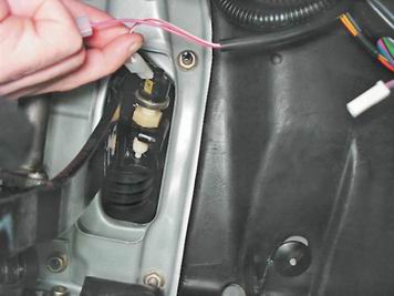 7. Снимаем две колодки проводов с выводов выключателя сигнала торможения, установленного на педальном узле.