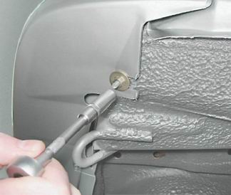 Задний бампер - снятие и установкаДля выполнения работы потребуется помощник. Снятие 1. Торцовым ключом на 10 мм с глубокой головкой отворачиваем две гайки нижнего крепления бампера (по одной гайке с каждой стороны автомобиля).