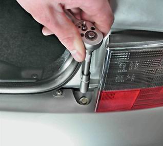 2. Этим же ключом отворачиваем два болта (по одному с каждой стороны), крепящие бампер сверху. Болты расположены рядом с задними фонарями.